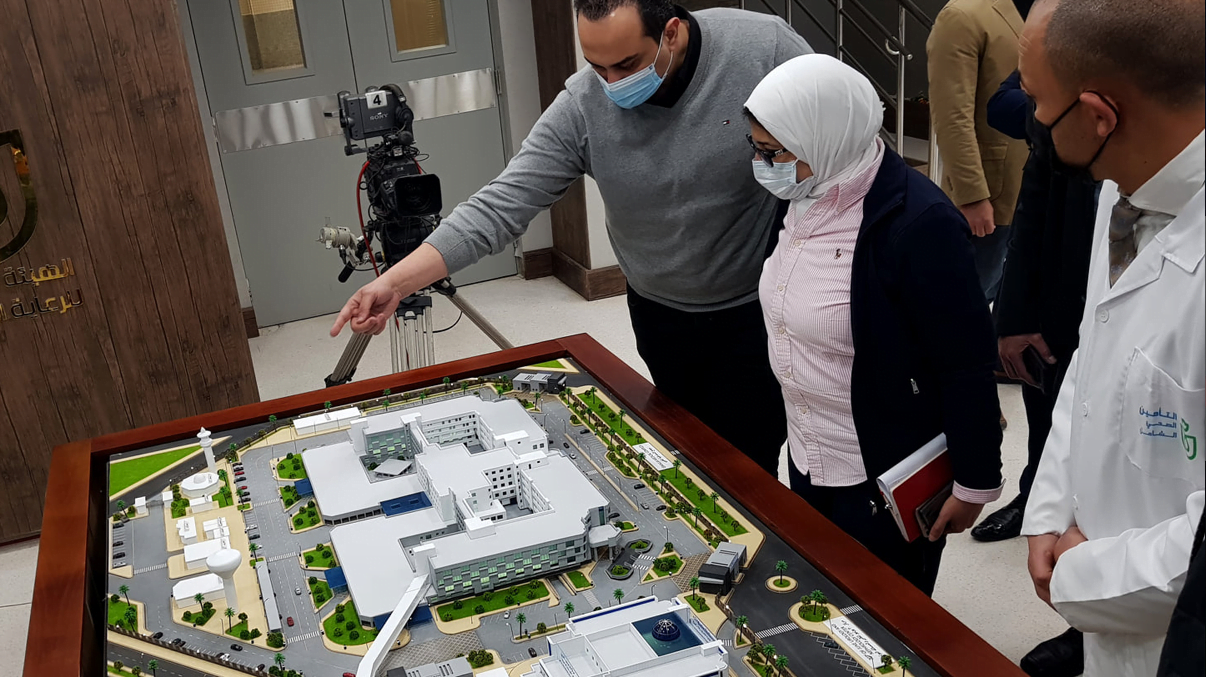 An architectural model for a medical complex in Ismailia, which was opened by the President Mr. Abdel Fattah EI-Sisi, and the Minister of Health, Dr. Halo Zayed, and Mr. Mostafa Madbouly, Prime Minister.